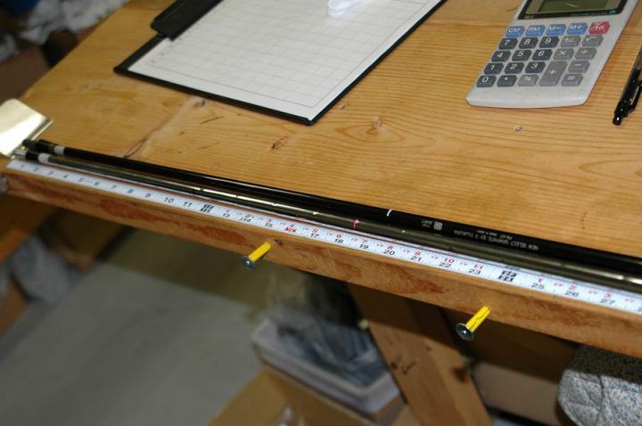 左記はシャフトのバランスポイント位置を計測しております。(3アイアン用) |